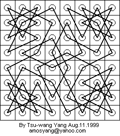 p.s. We made a program to help find tours on certain large boards (8x8, 7x8, etc. you don't want to do it by hand) in C++. E-mail to amosyang@yahoo.com if you are interested in finding out more about this program. :)