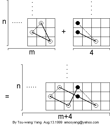 Combining these, we get that an m x n open tour exists, m >= 5, odd; n >= 5, odd. If we use the results from the closed tours (an m x n closed tour exists for m >= 5; n >= 6, even), we get that an open m x n tour exists for m >=5, n >= 5. But we have shown that a 4 x n open tour exists, n >= 5. So an m x n open tour exists for m >=4, n >=5. This concludes the proof.